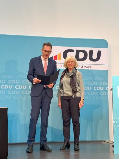 Wir freuen uns sehr, dass unter den Geehrten auch Erika Pfreundschuh aus dem Stadtverband der CDU Bergen-Enkheim vertreten ist.